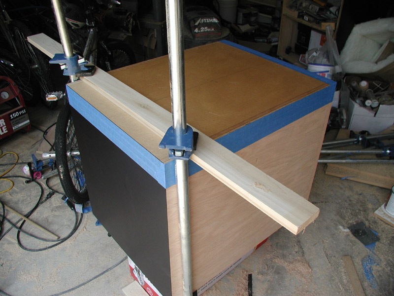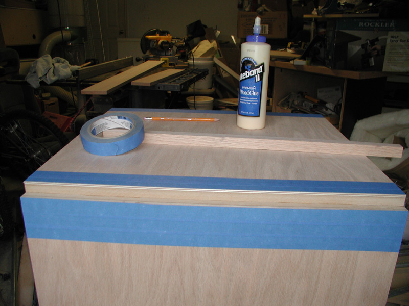 trimmed. The blue tape keeps the glue that squeezes out from soaking